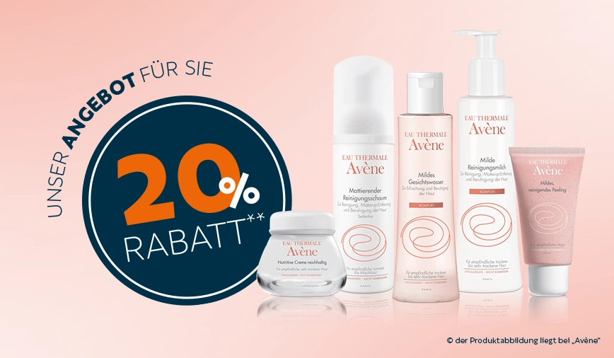 Freuen Sie sich über 20% Rabatt** auf alle vorrätigen „Avène“-Produkte.