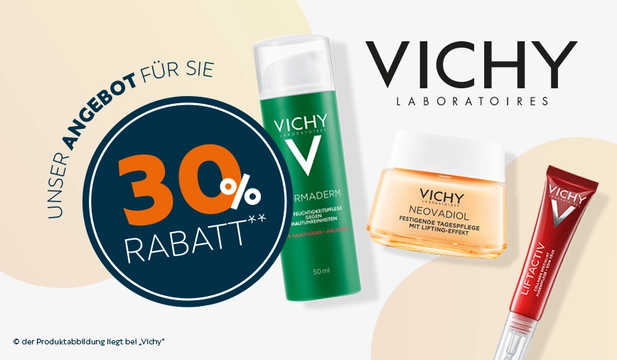 Freuen Sie sich über 30% Rabatt** auf ausgewählte Produkte der Firma „Vichy“.