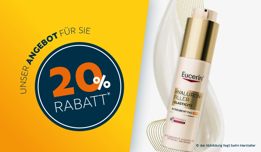 Individuelle Hautanalyse und Beratung und 20 % Rabatt* auf alle vorrätigen Produkte von „Eucerin“. Bitte reservieren Sie online oder vor Ort Ihren Termin.